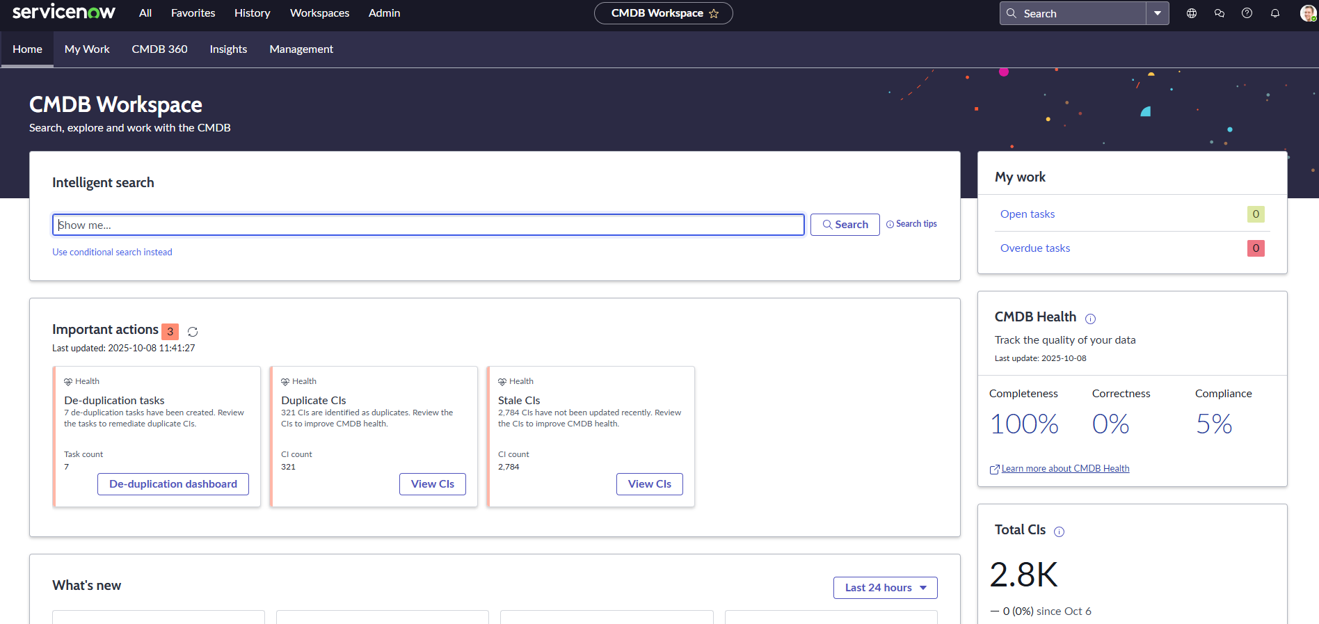 - Modern dashboard experience: The redesigned Health dashboard in CMDB Workspace (Xanadu and later) simplifies scoring and speeds iteration on metrics and remediations.