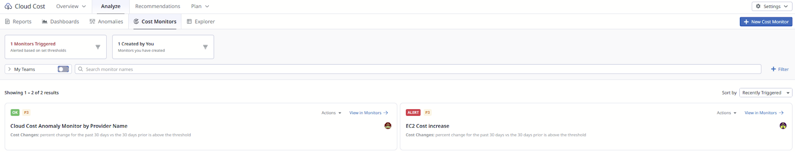 Cost isn’t a perfect security indicator, though. Launching new nodes for a product deployment can look the same as launching them for cryptomining—until you correlate. That’s where Datadog’s Cloud Cost Management (CCM) becomes interesting: Datadog ingests cloud cost data and transforms it into metrics you can query, explicitly encouraging correlation between cost increases and usage metrics to find the root cause. The Cloud Cost Explorer is built for ad-hoc investigation of trends and anomalies across providers. When you want repeatable detection, Cloud Cost Monitors let you alert on cost changes and threshold breaches. You can also set budgets at a monthly level by cloud provider or leverage the myriad of other tags and attributes available. The idea here is to lean into cost monitoring as an early warning boundary when routed to the right responders. If you take that analysis another step deeper, you could even find that “why does this even exist?” infrastructure.