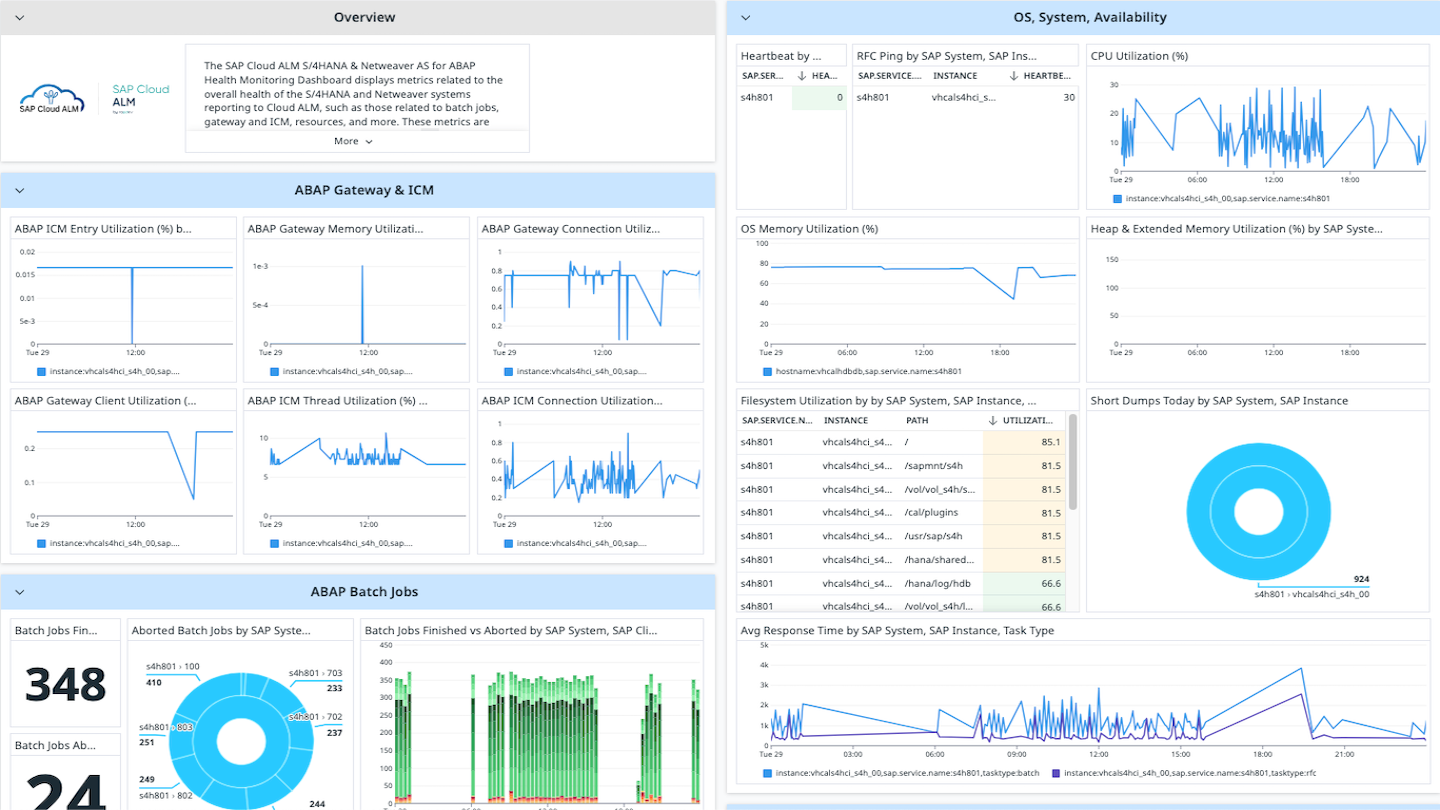 This integration leverages SAP Cloud ALM APIs to collect metrics, logs, and traces from connected SAP systems and pushes them to Datadog using OpenTelemetry. It supports multiple Cloud ALM providers, including Health Monitoring, Job & Automation Monitoring, Exception Monitoring, and Integration Monitoring, making it a comprehensive solution for tracking SAP operations in real time.